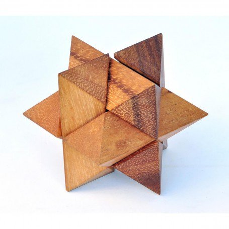 Uitdaging! Demonteer en hermonteer de ster, bestaande uit 6 delen. Een van de beste 3D-houten puzzels die je je kunt voorstellen.