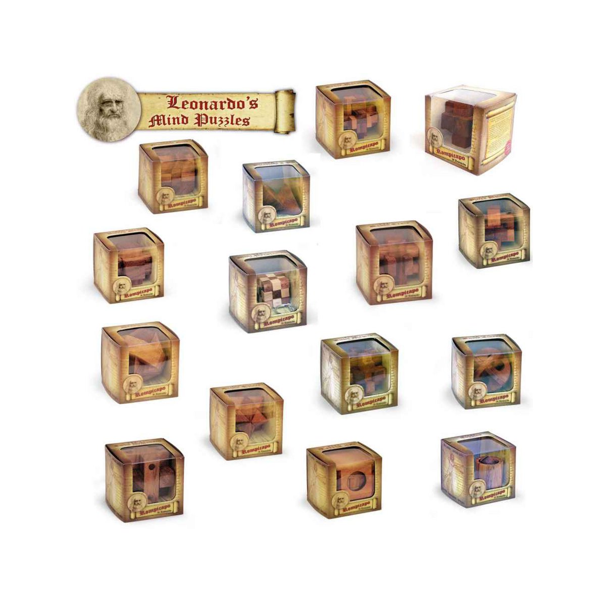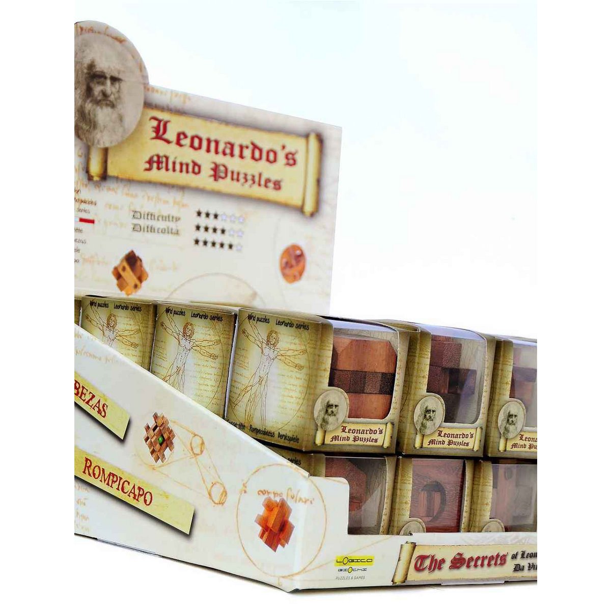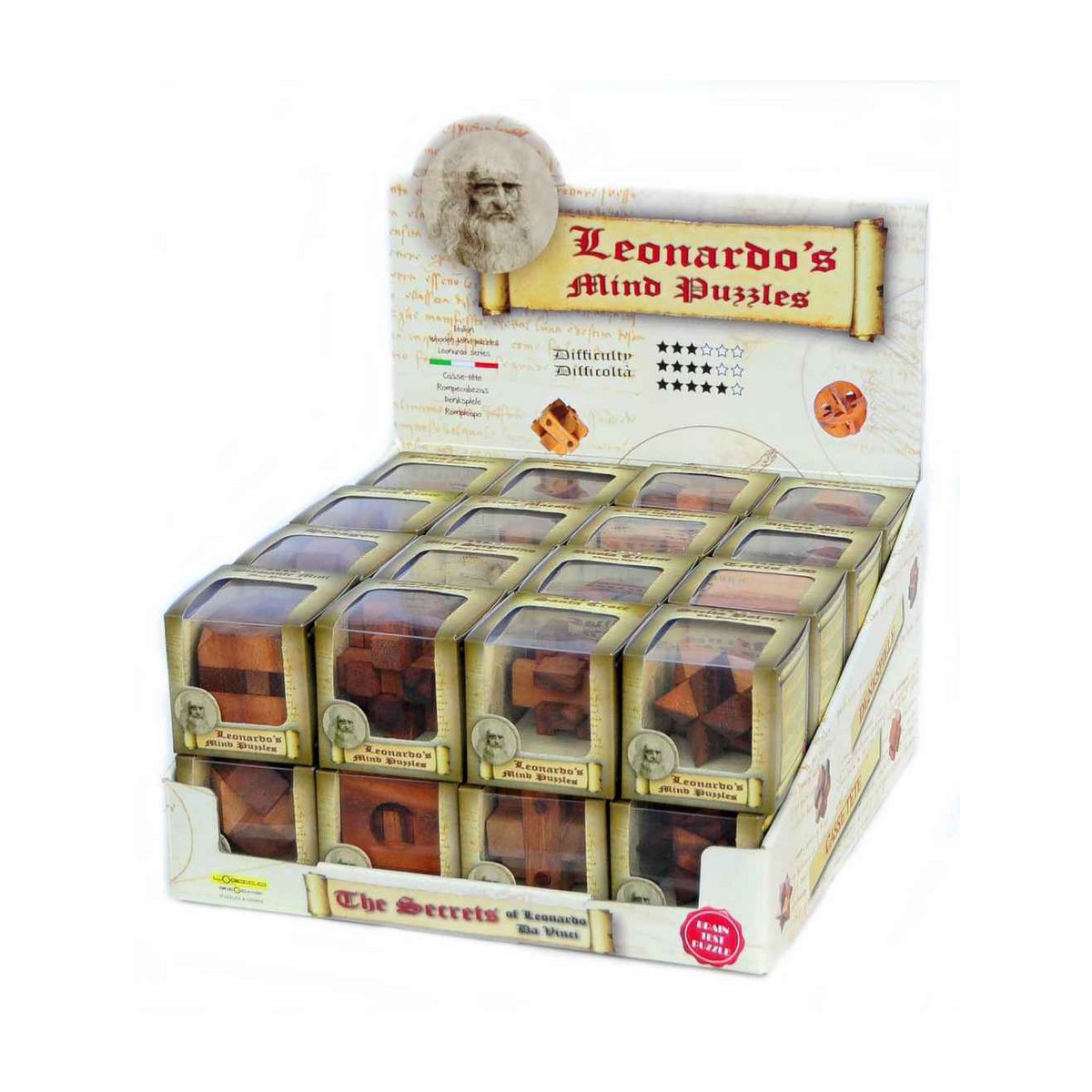 Deze compacte toonbankdisplay bevat 32 mini houten kubuspuzzels uit de stijlvolle Leonardo da Vinci-serie. De puzzels zijn van zakformaat en variëren in moeilijkheidsgraad – perfect om klanten uit te dagen of als origineel cadeau-idee.