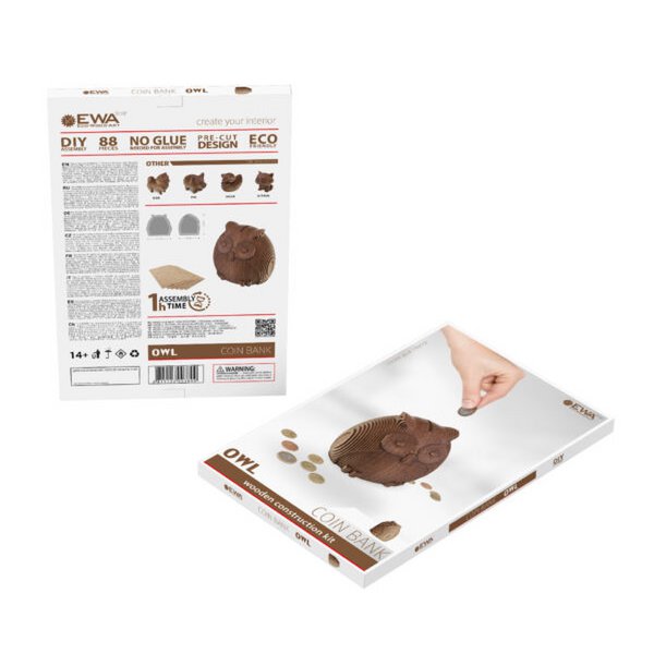 Eco Wood Art (EWA) 3D Houten Bouwset Spaarpot Uil/Owl, 3809, 15x9,1x15,7cm