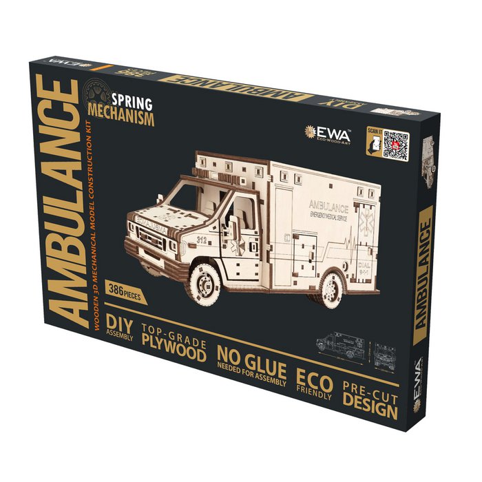 Eco Wood Art (EWA) DIY 3D Mechanical Model Ambulance, 4011, 29,5x12,9x12,4cm