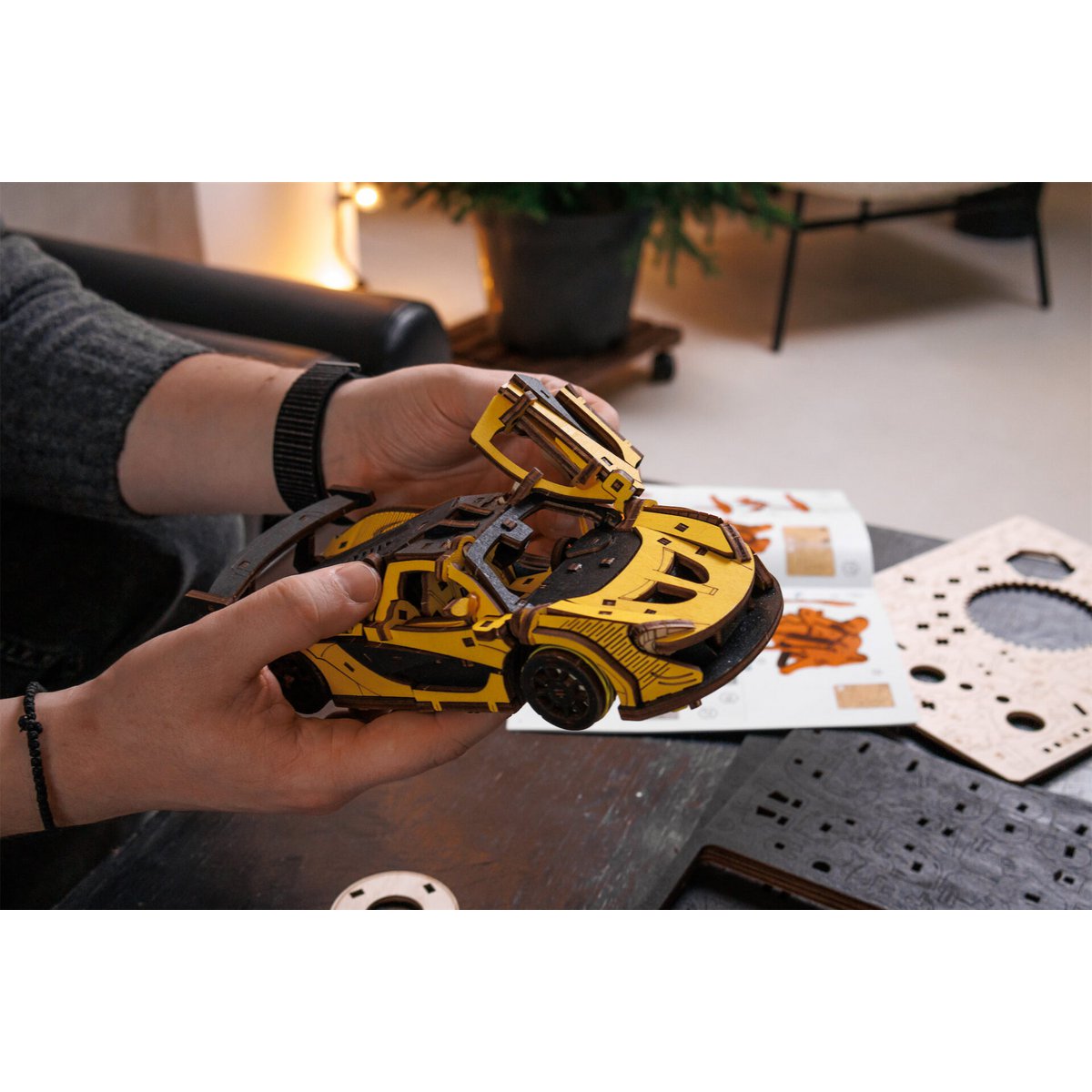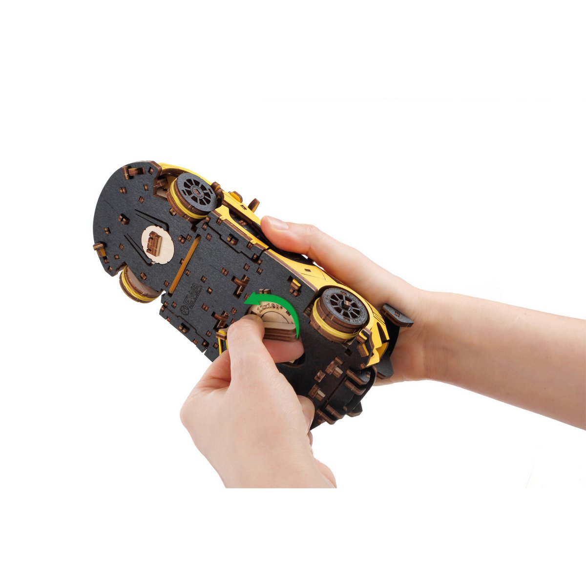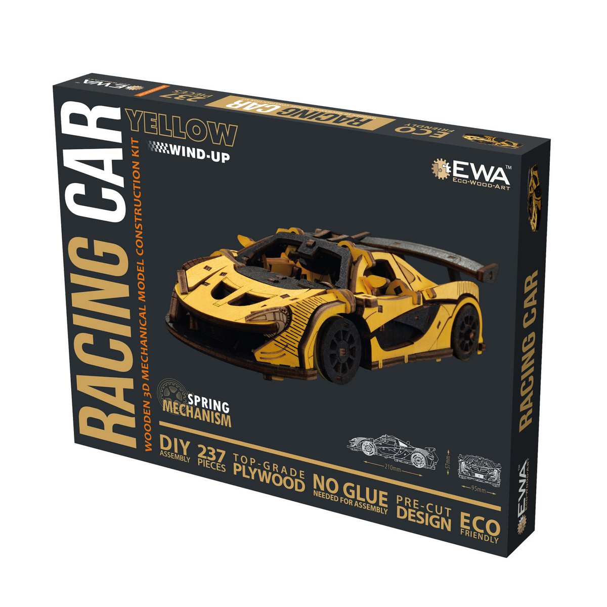 Eco Wood Art, (EWA) DIY 3D Mechanical Model Racing Car Yelow, 4042, 21x9,5x5,7cm