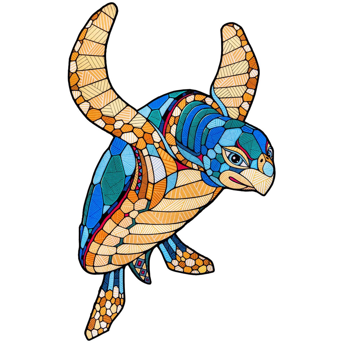 Eco Wood Art (EWA) Houten Puzzel Schildpad/ Turtle, size S, Houten Doos