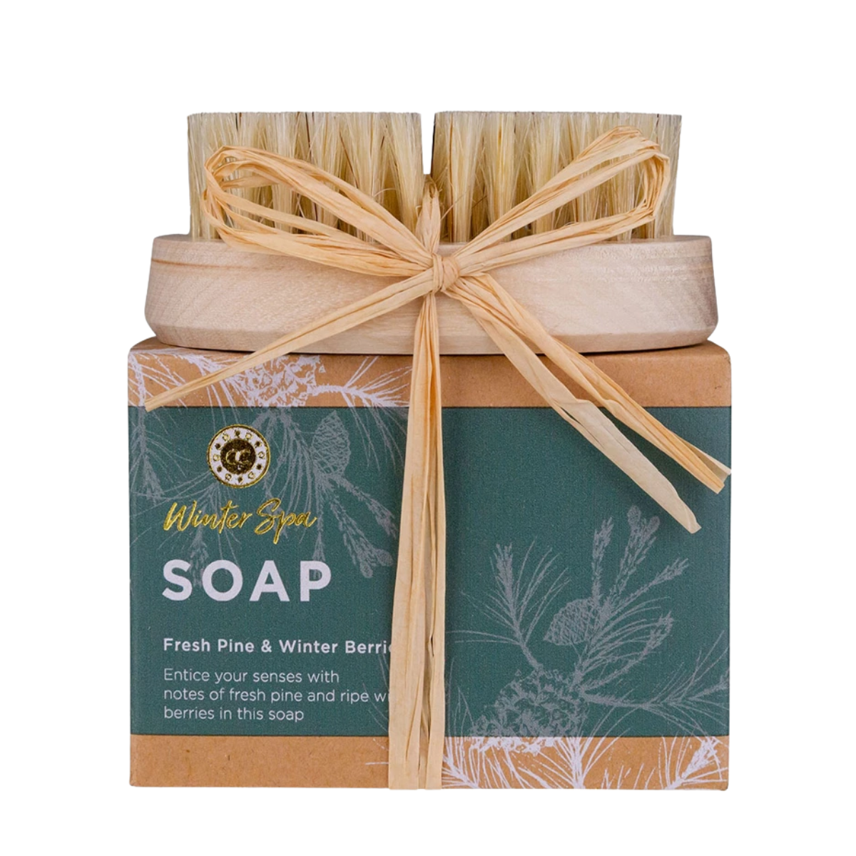 Zeep & Nagelborsteltje Giftset – 100 g handgemaakte zeep met houten borsteltje, in de frisse geur van dennennaalden en bessen