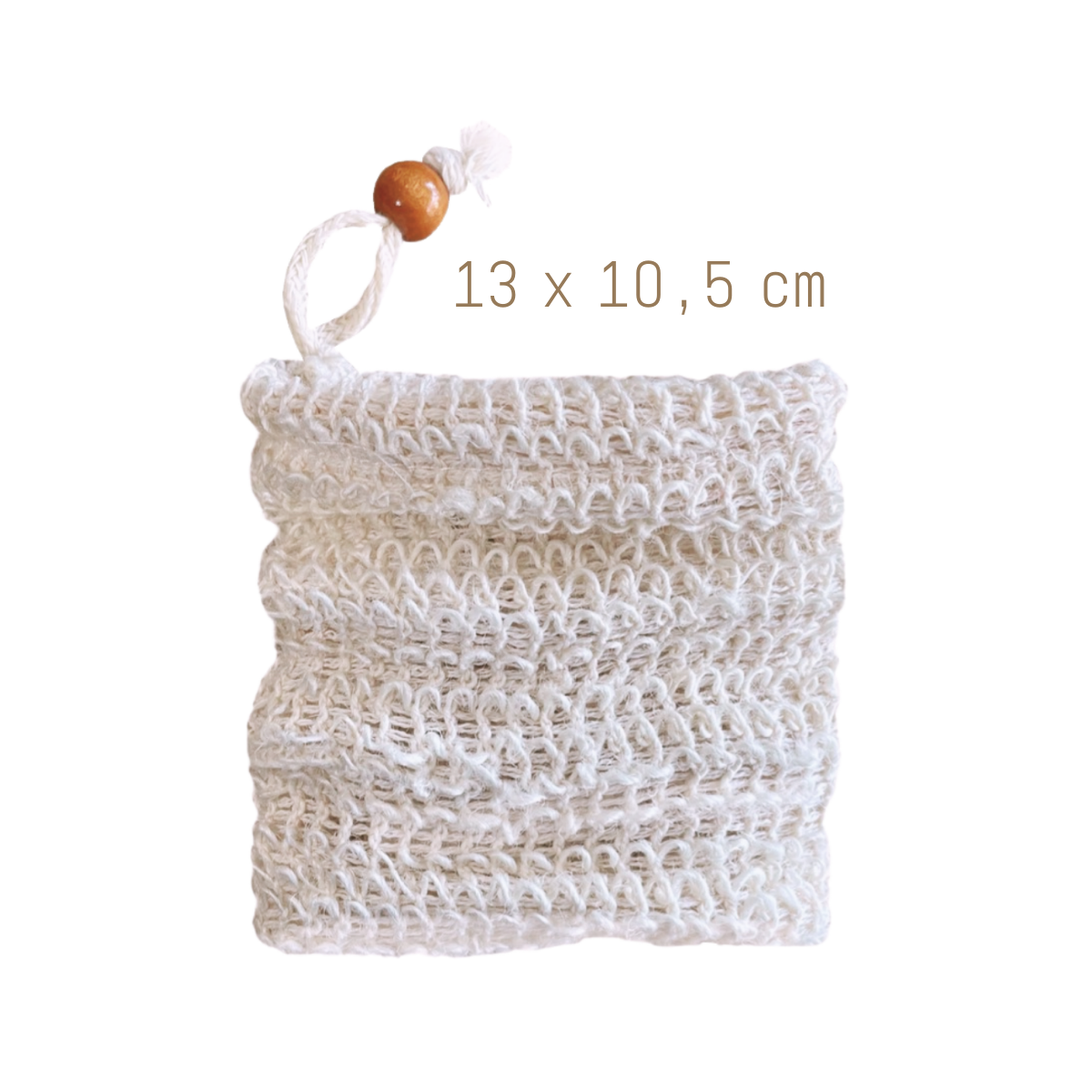 Ontdek het veelzijdige waszakje gemaakt van stevig en milieuvriendelijk hennepvezel. Perfect voor al jouw duurzame zeepjes én ideaal om mee te scrubben dankzij het natuurlijke schuim dat het creëert.