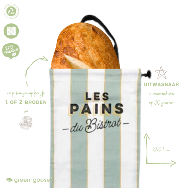 De green-goose Herbruikbare Broodzak XXL is hét milieuvriendelijke alternatief voor plastic zakken – perfect voor grote broden, versgebakken lekkernijen en verpakkingsvrij boodschappen doen! Deze ruime broodzak is gemaakt van ademend, ongebleekt katoen in een mooie crèmekleur. Zo blijft jouw brood langer vers en draag je bij aan een plasticvrije keuken.