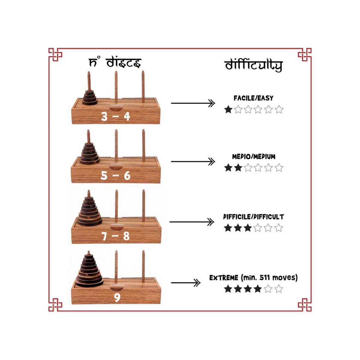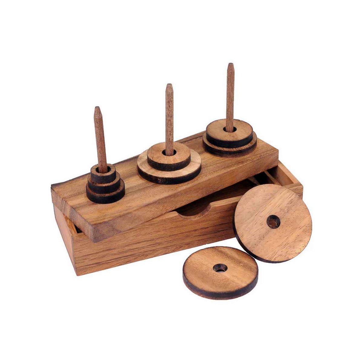 Daag jezelf uit om alle schijven op slimme wijze van de ene paal naar de andere te verplaatsen, zonder een grotere schijf op een kleinere te leggen. Perfect voor jong en oud, dit spel stimuleert logisch denken, geduld en strategisch inzicht.