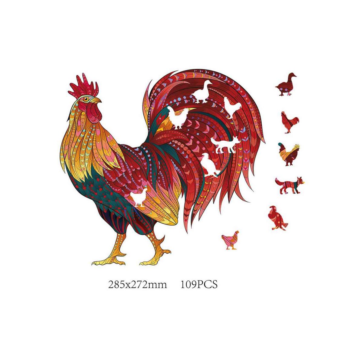 Logica Giochi Mandala Houten Legpuzzel Haan/ Rooster, 28,5x27,2 cm