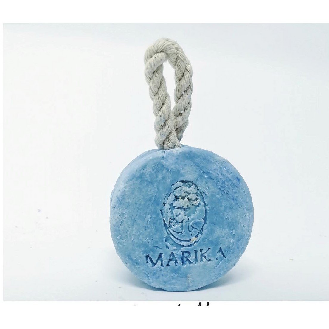 Deze luxe olijfolie-zeezoutzeep van Marika combineert de voedende werking van olijfolie met de verfrissende scrub van zeezout. Dankzij het handige koord hang je de zeep makkelijk op in de douche of badkamer. Zacht reinigend, verzorgend én decoratief. Afmeting: 7,5 x 7,5 x 3 cm. Perfect voor dagelijks gebruik of als stijlvol cadeau.