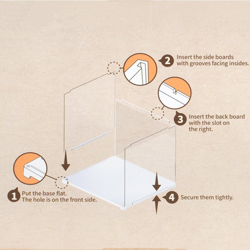 Over dit artikel Dit is een displaydoos die wordt gebruikt om uw miniatuurhuis tegen stof te beschermen. Het product is geschikt voor doe-het-zelf-miniatuurhuizen, behalve DG12. Verwijder de beschermlaag die over de acryl platen zit.