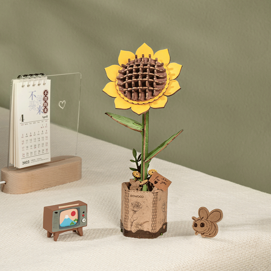 Robotime, DIY Houten Bloem, Chamomile/Kamille, TW061, 9,5x9x22,5cm