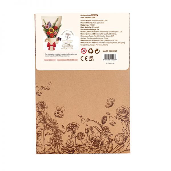Robotime, DIY Houten Bloem Pink Carnation, Roze Anjer, TW051, 12x7x2