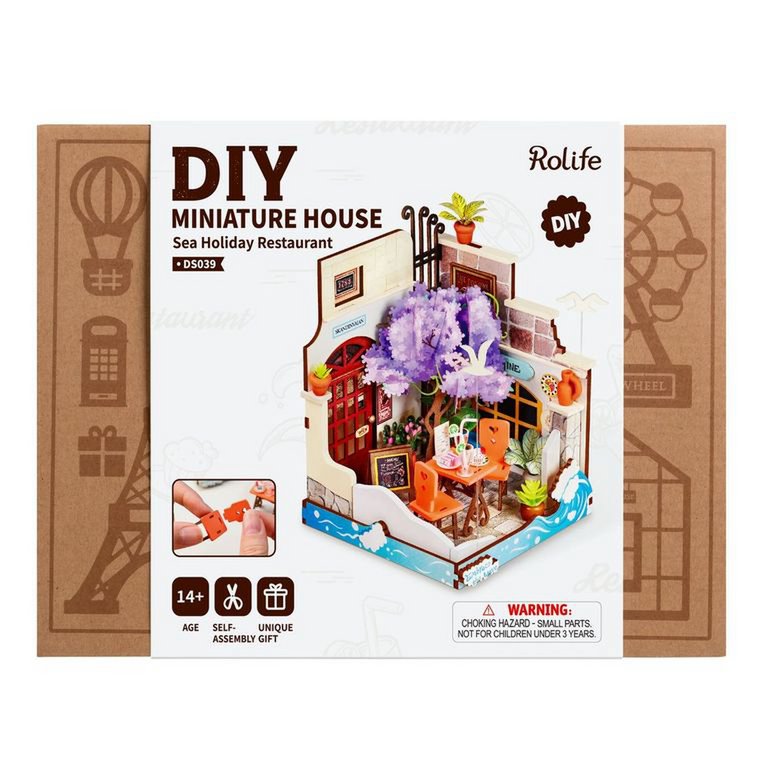 Robotime, DIY Huisje Sea Holiday Restaurant, DS039, 10x9,x13cm