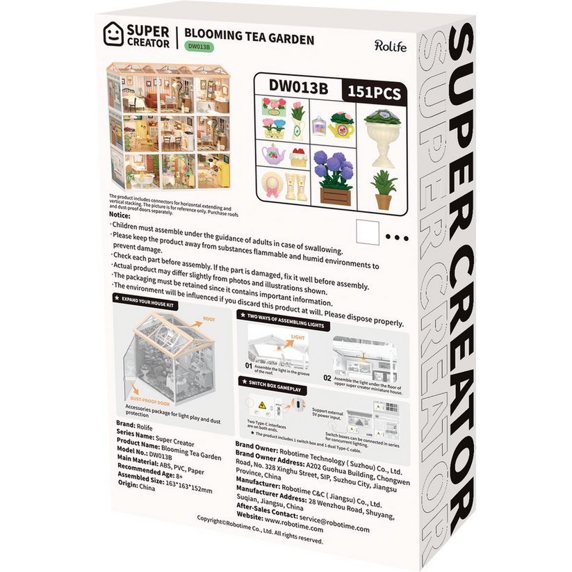 Robotime, DIY Huisje Super Creator Blooming Tea Garden, DW013B, 16,3x16,3x15,2cm