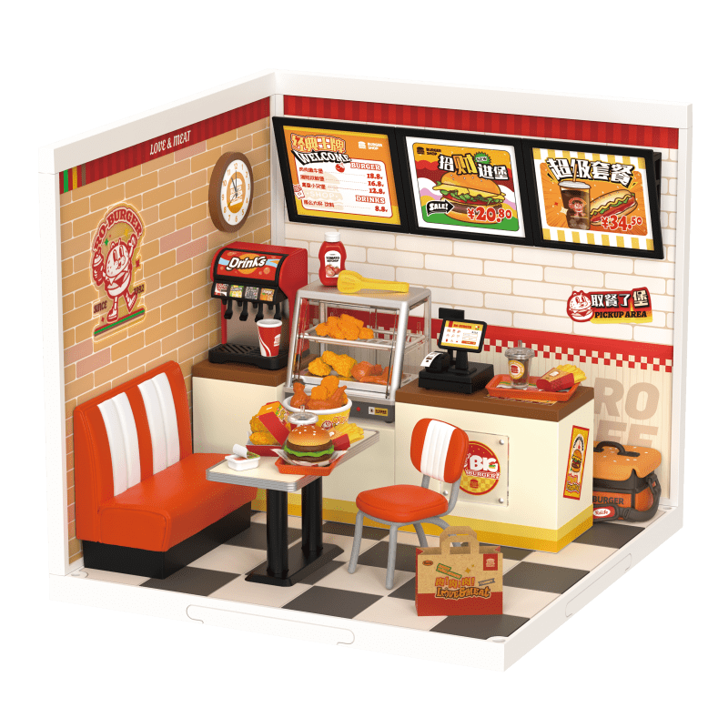 Robotime, DIY Huisje Super Creator Yum Yum Burgers, DW010, 16,3x16,3x15,2cm