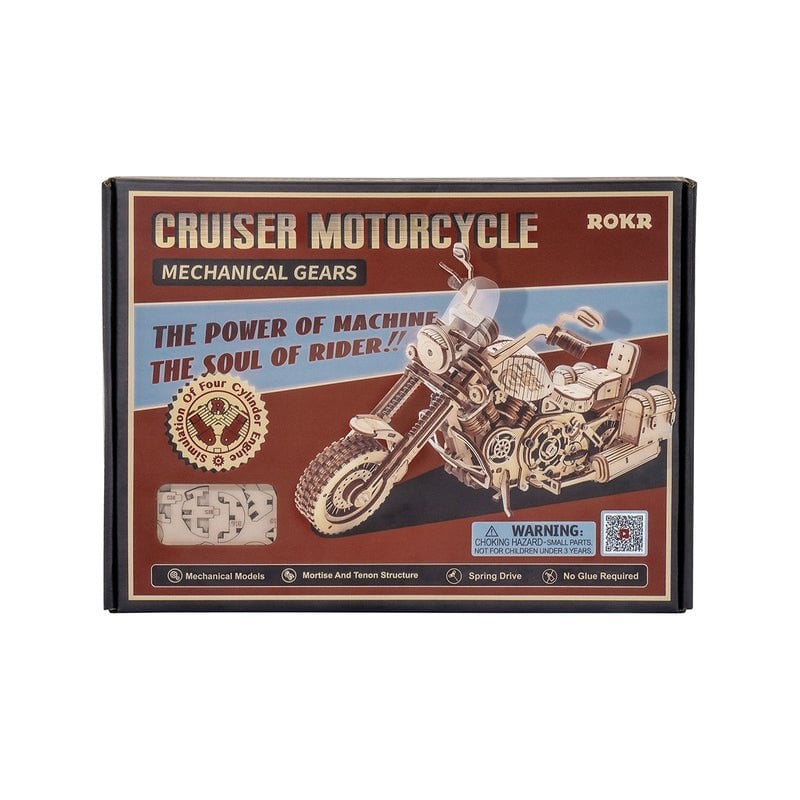 Robotime, Houten Puzzel 3D Cruiser Motorcycle, LK504, 27x11,6x16cm